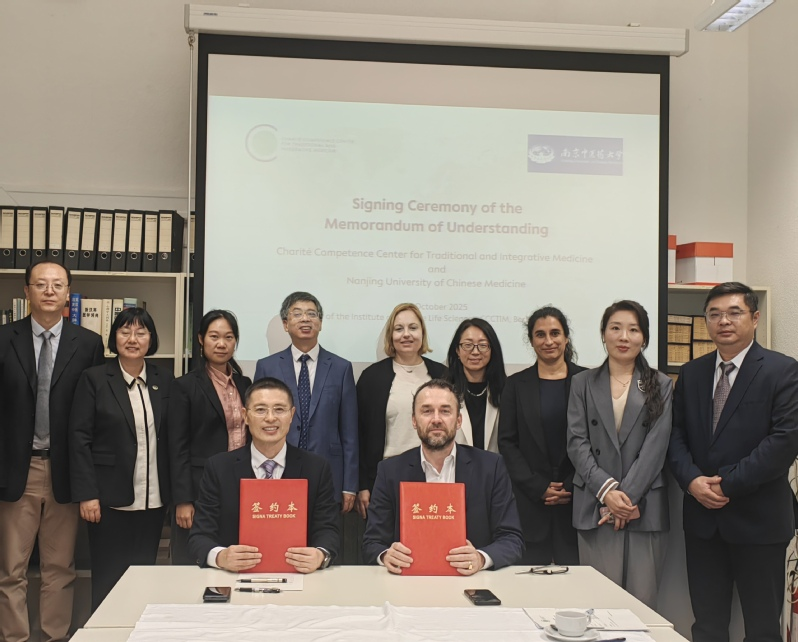 At Charité – Universität**edizin Berlin, Secretary Qiao Xuebin met with Prof. Georg Seifert, Director of Charité Competence Center for Traditional and Integrative Medicine (CCCTIM), and signed a Memorandum of Understanding (MoU). The two sides agreed to deepen cooperation in medical training, clinical service, scientific innovation, and cultural communication through the bridge of TCM, with the shared goal of improving public health and contributing to a community of common health for humanity. The dialogue also covered topics such as the translation of ancient TCM texts, clinical application and evidence-based research on appropriate TCM techniques, and efficacy and safety evaluation of classical prescriptions. Counselor Chen Linhao attended the ceremony and related activities.